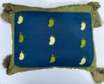 A tribute to the joys of summer—whether savoring tangy kairi (unripe mango) or sweet ripe mangoes. These handcrafted cushions feature GENERATION’s fabric, Indian raw silk side borders, and handmade tassels. Bring one home to add a pop of color and a touch of vibrancy to your interiors.